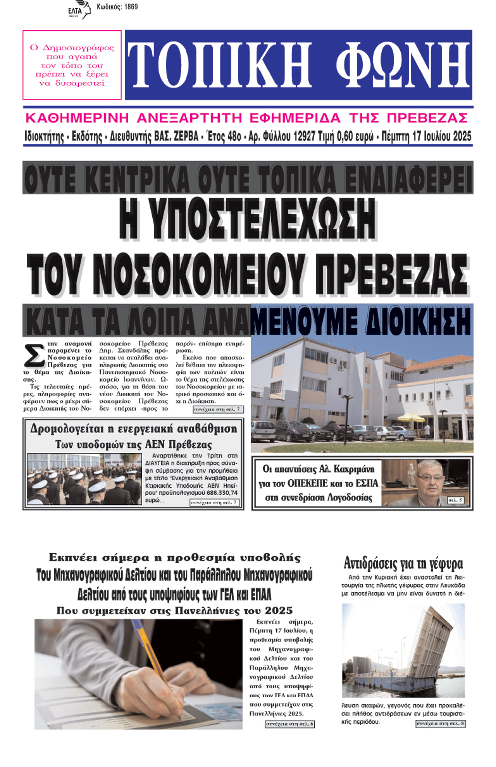 Καθημερινή Ανεξάρτητη Εφημερίδα της Πρέβεζας