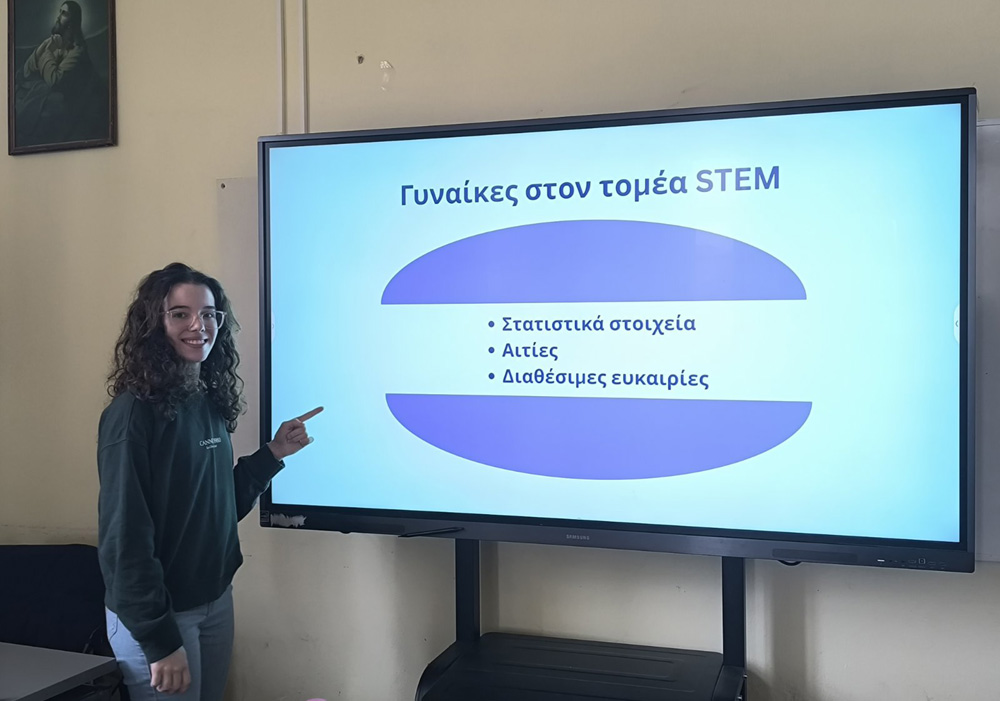 Επιπλέον επέδειξε τις δυνατότητες του προγράμματος και τον τρόπο χειρισμού της πλατφόρμας για την απόκτηση ευρωπαϊκών πιστοποιητικών και τόνισε τη σημασία της ενασχόλησης με το STEM, ειδικά για τις μαθήτριες, δεδομένου ότι το ποσοστό των γυναικών στον κλάδο παραμένει χαμηλό στην Ευρώπη σε σχέση με τους άνδρες.