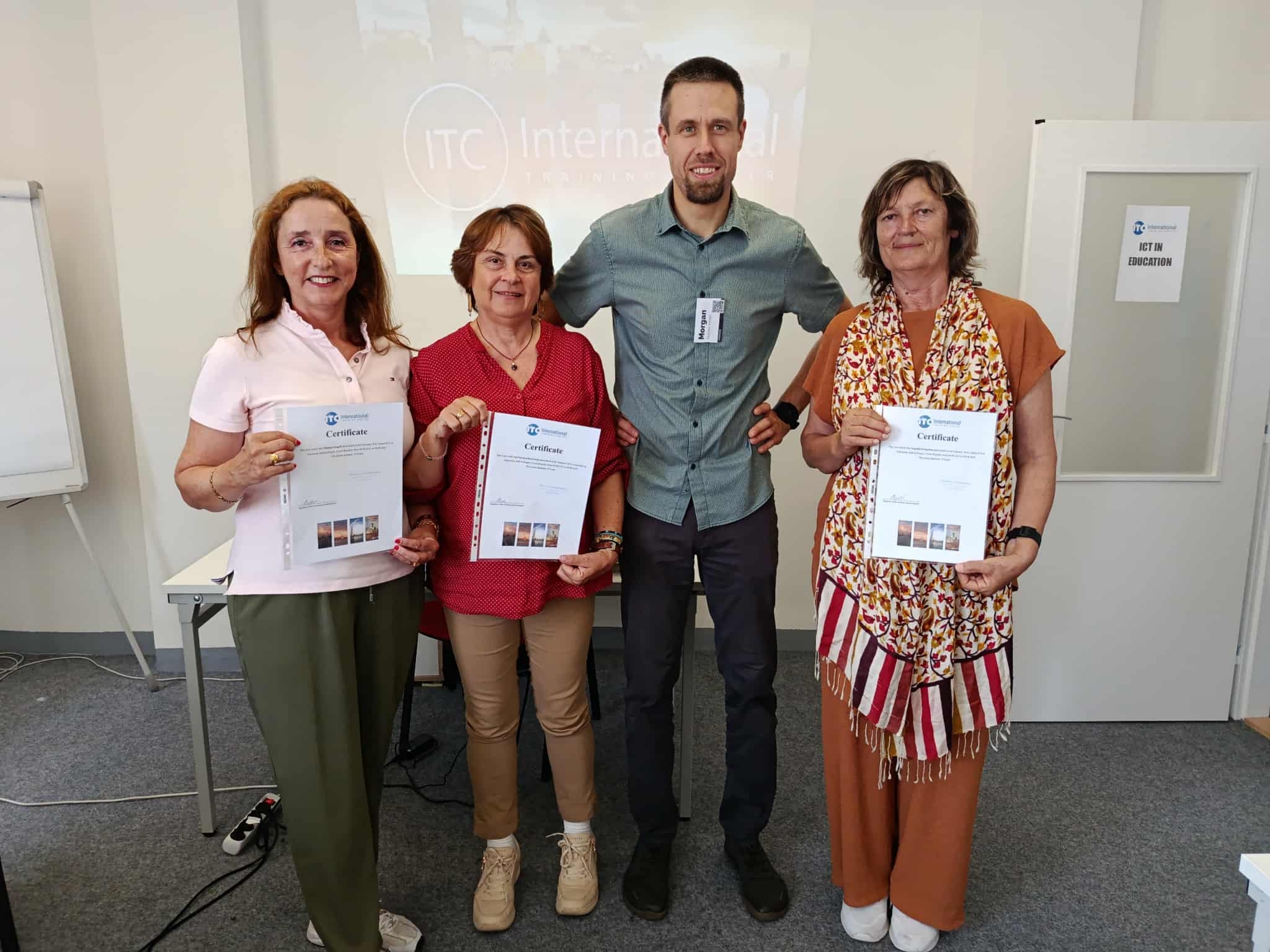Επίσης, οι εκπαιδευτικοί του σχολείου μας κα. Βαρβάρα Ζαντραβέλη, κα. Αγγελική Ευαγγέλου και κα. Θάλεια Βαγγέλη παρακολούθησαν επιμόρφωση με θέμα «ICT in Education» που διοργανώθηκε από τον οργανισμό ITC International training center s.r.o. Η θεματολογία της επιμόρφωσης επικεντρώθηκε στη χρήση των Τεχνολογιών Πληροφορικής και Επικοινωνιών (ΤΠΕ).