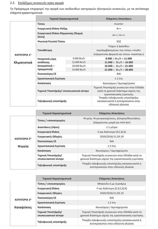 Κάθε νοικοκυριό που εντάσσεται στο πρόγραμμα θα έχει τη δυνατότητα να αντικαταστήσει έως και τρεις ηλεκτρικές συσκευές (μέχρι 2 κλιματιστικά, ένα ψυγείο ή έναν καταψύκτη) για την κύρια ή την δευτερεύουσα κατοικία, ιδιόκτητη ή μισθωμένη. Τα κριτήρια υπαγωγής περιλαμβάνουν το εισόδημα και το πλήθος των μελών της οικογένειας με πρόσθετη μοριοδότηση για μονογονεϊκές και οικογένειες με ΑΜΕΑ.