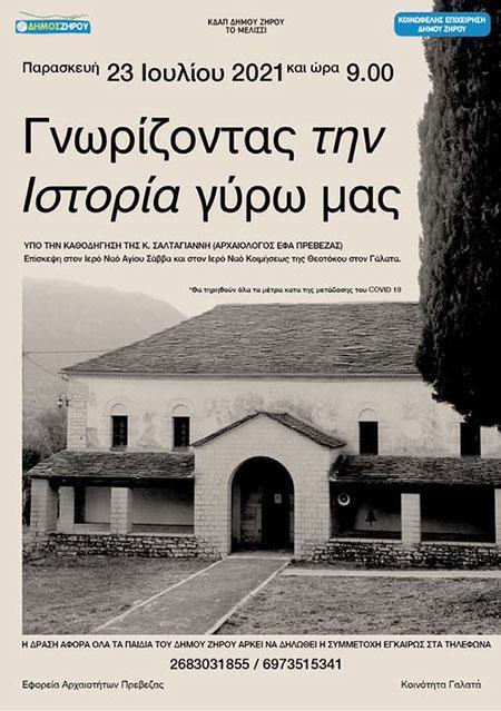 Ο Δήμος Ζηρού και το ΚΔΑΠ "Το μελίσσι" την Παρασκευή 23 Ιουλίου και ώρα 9.00 στα πλαίσια της δράσης: "Γνωρίζοντας την ιστορία γύρω μας" θα πραγματοποιήσουν επίσκεψη στον Ι.Ν. Αγίου Σάββα και Ι.Ν. Κοιμήσεως Θεοτόκου υπό την καθοδήγηση της κ. Σαλταγιάννη Αρχαιολόγο της ΕΦΑ Πρέβεζας. Η δράση αφορά όλα τα παιδιά του Δήμου Ζηρού.