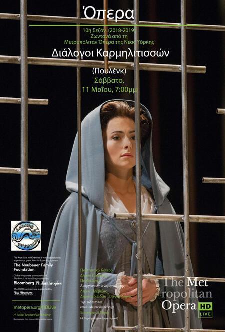 Με την όπερα "Διάλογοι Καρμελιτισσών" του Φράνσις Πουλένκ το Σάββατο 11 Μαΐου στις 7:00 μ.μ. στο Πολιτιστικό Κέντρο Δήμου Πρέβεζας (πρώην Όαση), ολοκληρώνονται για τη σεζόν 2018-2019 οι απευθείας μεταδόσεις από τη Μετροπόλιταν Όπερα της Νέας Υόρκης.