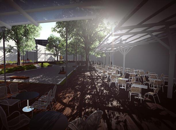 Σύμφωνα με τη μελέτη προβλέπεται δημιουργία χαμηλού πρασίνου σε πλαγιαστά παρτέρια, ορατά από κάθε σημείο της Πλατείας, συνδεδεμένο με τα ψηλά δένδρα τα οποία θα παραμείνουν σε τμήματα εκτός περιγράμματος του περιμετρικού σκεπαστού τμήματος.