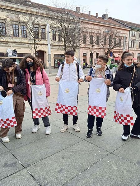 1η ημέρα: Τελετή υποδοχής στο σχολείο από τον διευθυντή, τον συντονιστή του προγράμματος, τους εκπαιδευτικούς και τους μαθητές ,με παρουσίαση τραγουδιών της περιοχής από τη χορωδία του σχολείου, παρουσίαση τοπικών προiόντων και χειροποίητων κατασκευών από τα μέλη τοπικών γυναικείων συνεταιρισμών. Έγιναν παρουσιάσεις με βίντεο των εταιρικών σχολείων και οι μαθητές του σχολείου μας έφεραν το άρωμα της Πρέβεζας στο Όσιγιεκ της Κροατίας.