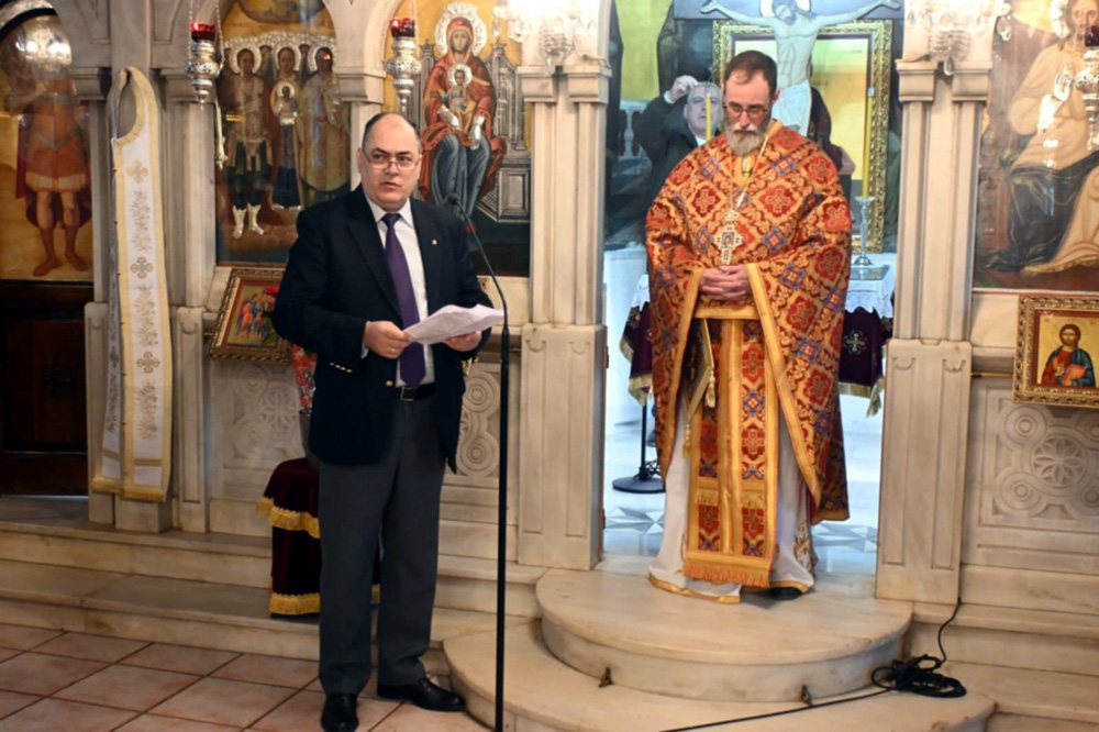 Μετά την Επιμνημόσυνη Δέηση για τον Αλέξανδρο Υψηλάντη, μίλησε εντός του Ιερού Ναού ο Πρόεδρος της Εταιρείας Βυζαντινών Μελετών Ν. Πρεβέζης κ. Ευάγγελος Κατσίμπρας ο οποίος αναφέρθηκε στην προσωπικότητα και τη δράση του ήρωα.