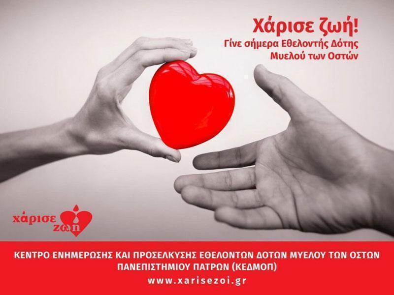 Το ΚΕΔΜΟΠ – «Χάρισε Ζωή» ως Κέντρο Ενημέρωσης και Προσέλκυσης Εθελοντών Δοτών Μυελού των Οστών Πανεπιστημίου Πατρών), διοργανώνει ανάλογες εκδηλώσεις σε ολόκληρη τη χώρα, ενημερώνει τον πληθυσμό και εγγράφει νέους εθελοντές καθώς η χώρα μας εμφανίζει ένα από τα χαμηλότερα ποσοστά εθελοντών δοτών ανά πληθυσμό στον κόσμο.