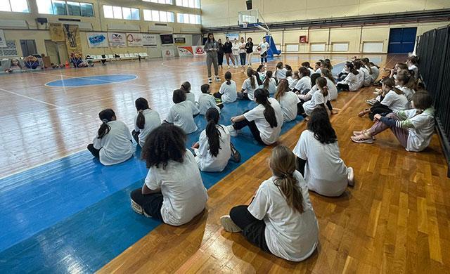 Τα κορίτσια είχαν την ευκαιρία να γνωρίσουν από κοντά τη σημαντικότερη παίκτρια του Ελληνικού μπάσκετ, η οποία με την ενέργεια και το χαμόγελό της δε σταμάτησε να απαντάει στις ερωτήσεις τους και να φωτογραφίζεται μαζί τους.