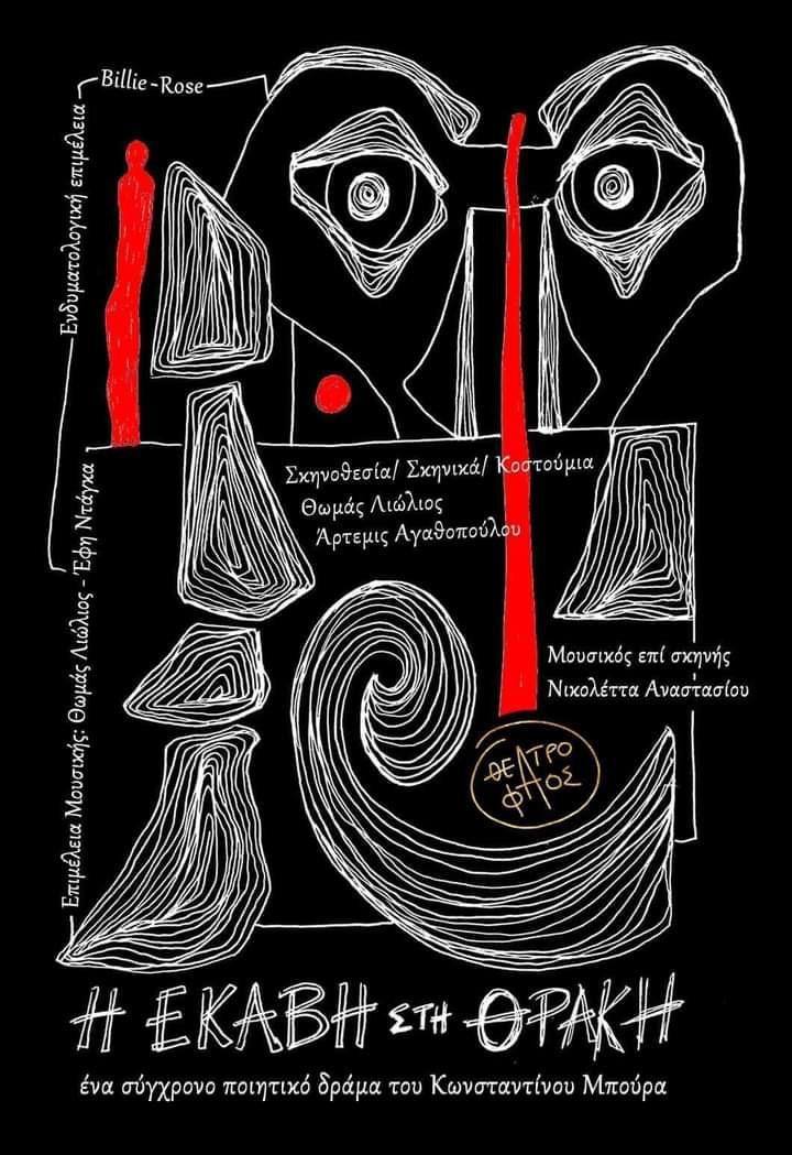 Το σύγχρονο ποιητικό δράμα του Κωνσταντίνου Μπούρα "Η Εκάβη στην Θράκη" είναι βασισμένο στο δεύτερο μέρος της αρχαίας τραγωδίας "Εκάβη" του Ευριπίδη.