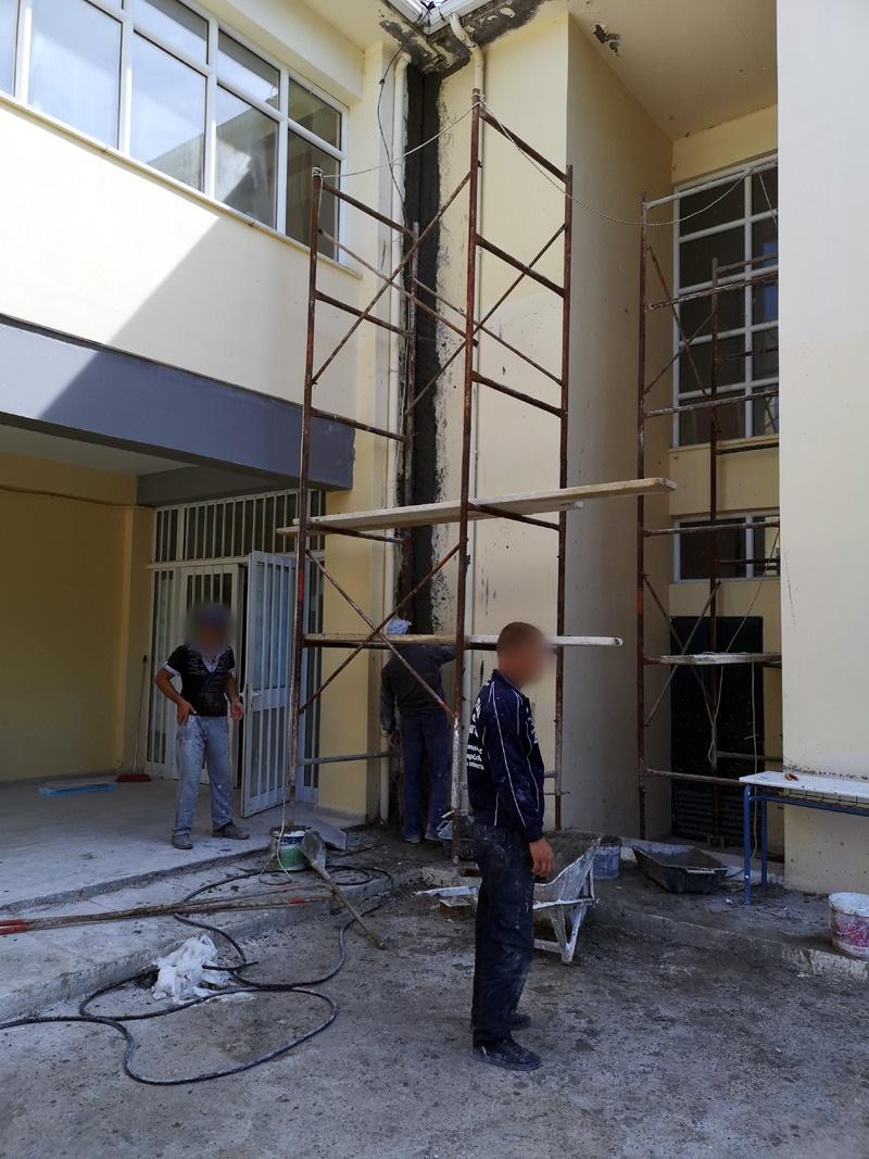 Αναφορικά με το σχολικό συγκρότημα Γυμνασίου-Λυκείου, ο σχεδιασμός του είναι να ξεκινήσει εργασίες από την επόμενη εβδομάδα. Μάλιστα, σκοπεύει να ξεκινήσει από την στέγη, τονίζοντας ότι πρέπει να γίνει καινούργια, κάτι όμως που δεν προβλέπεται στη μελέτη των Κτηριακών Υποδομών Α.Ε. και ο ίδιος αναγκαστικά θα κάνει κάποιες απλές επισκευές. Θεωρεί ότι μπορεί μέχρι 15 Οκτωβρίου να παραδώσει το κτήριο, εκτός από το Κλειστό Γυμναστήριο, που υπέστη πάρα πολύ σοβαρές ζημίες και πρόκειται να γίνει άλλη μελέτη επισκευής. Σύμφωνα όμως με τον ίδιο, μέχρι στιγμής δεν έχει λάβει καθόλου χρήματα από το Υπουργείο Μεταφορών και Υποδομών και αυτό θα τον αναγκάσει να σταματήσει τις όποιες εργασίες πρόκειται να κάνει.