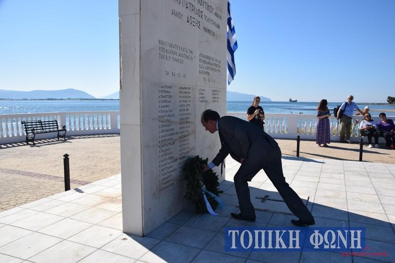 Στις 12 το πρωί τελέστηκε επιμνημόσυνη δέηση από τον Μητροπολίτη Πρέβεζας Χρυσόστομο, στο μνημείο Πεσόντων Ναυτικού, παρουσία του Δημάρχου Πρέβεζας, εκπροσώπου της Περιφέρειας, του ανωτάτου Διοικητή Φρουράς Πρέβεζας-Λευκάδας, εκπροσώπων αποστράτων από την Πρέβεζα, τα Ιωάννινα και την Άρτα, εκπροσώπων των σωμάτων ασφαλείας, φορέων, Συλλόγων και μαθητών.