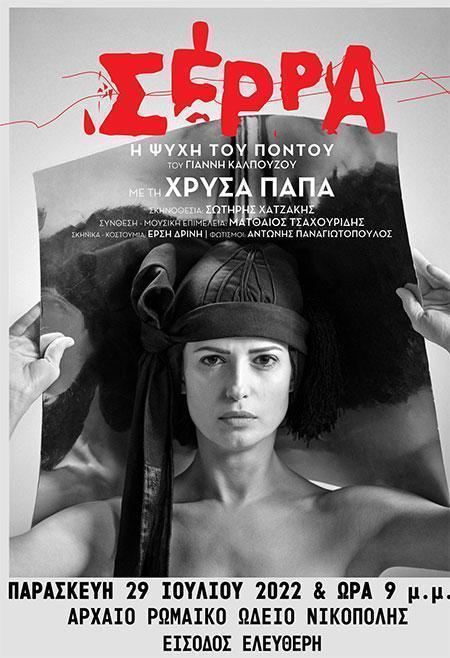 Πρόκειται για την “Σέρρα-η Ψυχή του Πόντου” του γνωστού Αρτινού συγγραφέα Γιάννη Καλπούζου , μια παράσταση μονόλογος, πάντα επίκαιρη που μιλάει στην ψυχή κάθε ξεριζωμένου λαού, ένας ύμνος στην ιστορία μας και στην ανθρωπιά, ένα έργο που αφορά κάθε άνθρωπο απ’ όπου κι αν κατάγεται.