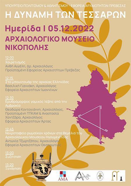 Με αφορμή τον εορτασμό της «Διεθνούς Ημέρας Μουσείων» 2022 (18η Μαΐου) τα τέσσερα Αρχαιολογικά Μουσεία της Ηπείρου, Άρτας, Ηγουμενίτσας, Ιωαννίνων και Νικόπολης σχεδίασαν και υλοποιούν από κοινού την εκθεσιακή δράση «Η Δύναμη των τεσσάρων».
