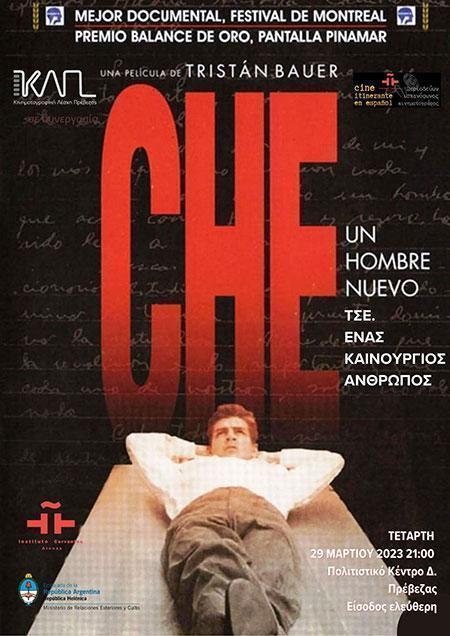 Η Κινηματογραφική Λέσχη Πρέβεζας πιστή στην προβολή ταινιών με κινηματογραφικό χαρακτήρα και αισθητική, προβάλλει την ταινία Che. Unhombrenuevo -Τσε, ένας καινούριος άνθρωπος σε συνεργασία με την Πρεσβεία της Αργεντινής στην Αθήνα και το Ινστιτούτο Θερβάντες, την Τετάρτη 29Mαρτίου 2023, 21:00 στο Πολιτιστικό Κέντρο του Δήμου Πρέβεζας με ελεύθερη είσοδο.