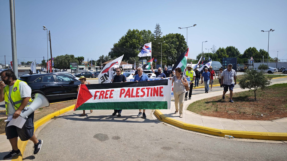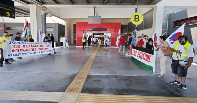 Η διαμαρτυρία για τα ισραηλινά εγκλήματα, με τις πλάτες των ΗΠΑ – ΝΑΤΟ – ΕΕ αλλά και της ενεργό εμπλοκή της Ελλάδας, έγινε στο αεροδρόμιο του Ακτίου, για να μεταφέρει στους επισκέπτες τα αισθήματα του λαού της Πρέβεζας και της Λευκάδας.