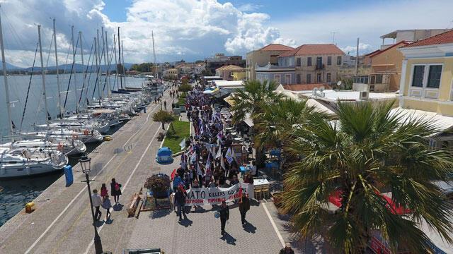 Στην πύλη της Βάσης του Ακτίου πραγματοποιήθηκε παράσταση διαμαρτυρίας, όπου χαιρέτισαν ο Μπρίκος Χρήστος, μέλος του Συντονιστικού Μαθητών Πρέβεζας η Βιβή Σταματέλλου εκ μέρους του Εργατικού Κέντρου Λευκάδας και ο Πελοπίδας Αντωνάκος μέλος της Επιτροπής Ειρήνης Αγρινίου, ενώ διαβάστηκε και ψήφισμα το οποίο στη συνέχεια επιδόθηκε στους υπευθύνους της βάσης του Ακτίου.