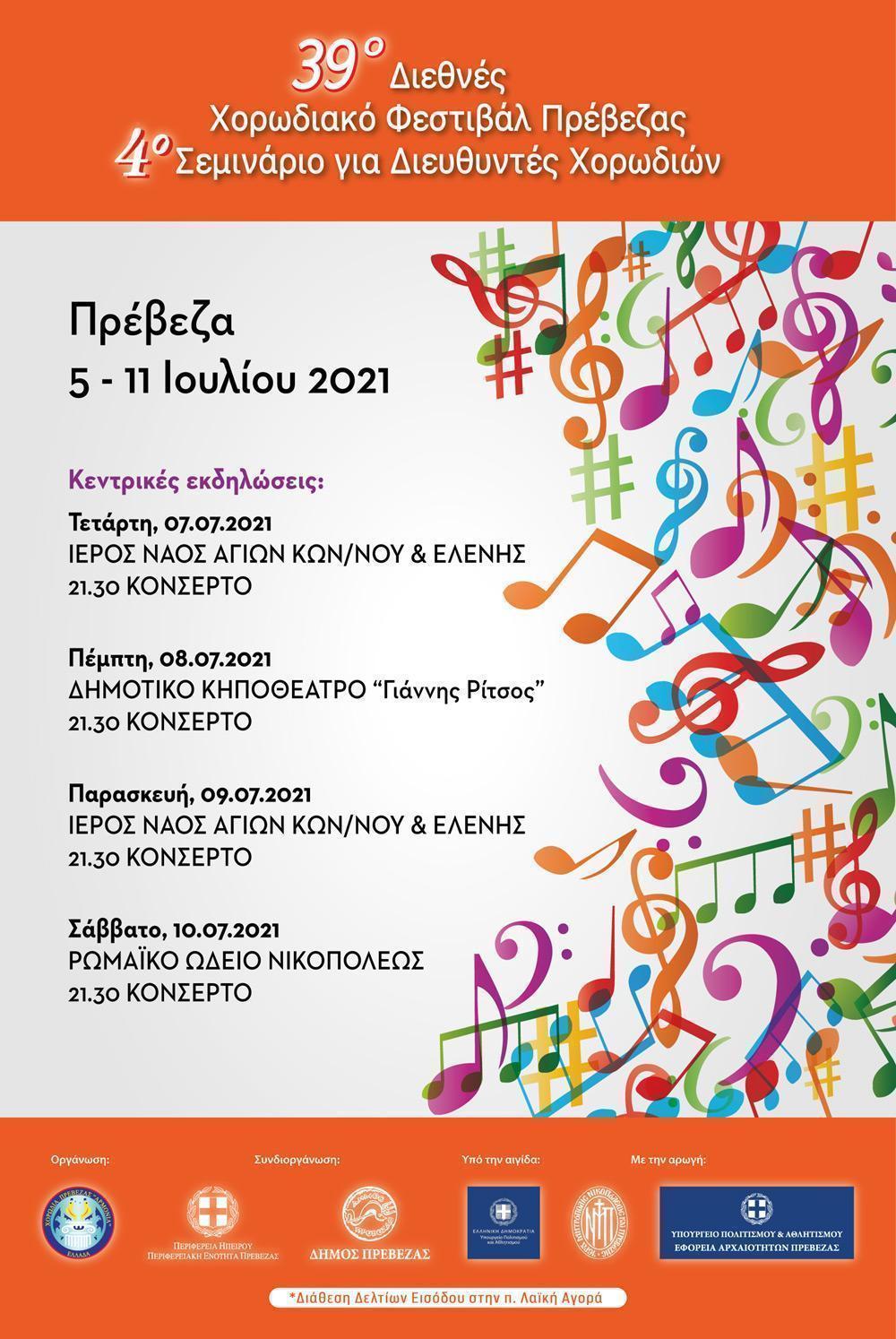 Ξεκινάει την Τετάρτη 7 Ιουλίου το 39ο Χορωδιακό Φεστιβάλ Πρέβεζας
