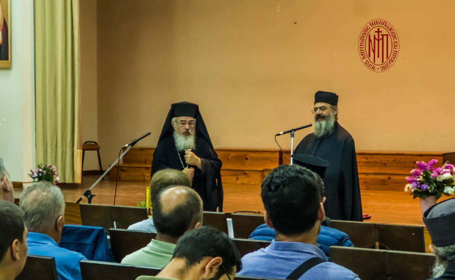 Στον χαιρετισμό που απηύθυνε προς τούς σπουδαστές της Σχολής ο Σεβασμιώτατος αναφέρθηκε τόσο στον σκοπό της ψαλτικής τέχνης, πού είναι να ευχαριστούμε και να δοξολογούμε τον Θεό, όσο και στους σκοπούς της Σχολής, που είναι αφ’ ενός μεν η εκμάθηση της Βυζαντινής Μουσικής, αφ’ ετέρου δε η επάνδρωση των ιερών αναλογίων, πού τα τελευταία χρόνια παρουσιάζει κάμψη. Τόνισε επίσης πώς η γνώση του Τυπικού της Εκκλησίας μας και η ευκρινής ανάγνωση παίζουν πρωτεύοντα ρόλο στην ιεροψαλτική διακονία. Τέλος ευχαρίστησε τον Διευθυντή της Σχολής Αρχιμ. Χαρίτωνα Μιχαήλ, τον Διευθυντή της χορωδίας της Μητροπόλεώς μας «Chorus Nicopolitanus» και Καθηγητή της Σχολής κ. Μιχαήλ Ζάμπα, Πρωτοψάλτη του Ιερού Ναού Αγίας Ειρήνης οδού Αιόλου της Ιεράς Αρχιεπισκοπής Αθηνών, τον κ. Γεώργιο Αλεφραγκή, πού διδάσκει στο πρακτικό τμήμα της Σχολής, καθώς και όλους τούς σπουδαστές και τις σπουδάστριες.
