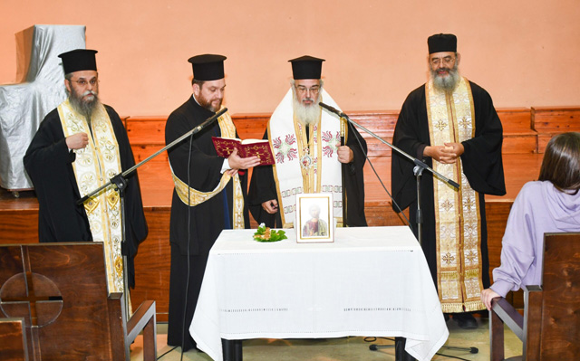 Το απόγευμα της Δευτέρας 13 Οκτωβρίου πραγματοποιήθηκε ο αγιασμός γιά την έναρξη των μαθημάτων της Σχολής Βυζαντινής Μουσικής της Μητροπόλεώς μας από τόν Σεβ. Μητροπολίτη μας κ. Χρυσόστομο, ο οποίος ευχήθηκε στους σπουδαστές καλή χρονιά, φώτιση καί δύναμη.