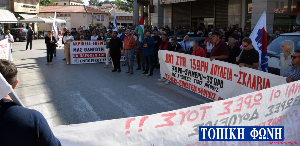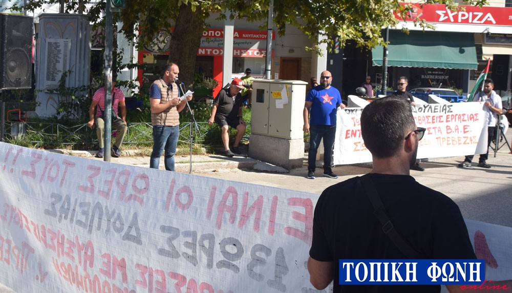 Σωματεία, Φορείς και εκπρόσωποι Συλλόγων, συγκεντρώθηκαν στο Εργατικό Κέντρο Πρέβεζας και στο ύψος των παλιών ΚΤΕΛ όπου εξέφρασαν την αντίθεσή τους στη 13ωρη εργασία ζητώντας σταθερή δουλειά με δικαιώματα, 35ωρο για όλους, αυξήσεις στους μισθούς, συλλογικές συμβάσεις εργασίας, επαναφορά του 13 και του 14ου μισθού, αφορολόγητο στα 12.000 ευρώ, με προσαύξηση 3.000 ευρώ για κάθε παιδί. Μέτρα ενάντια στην ακρίβεια και στη φοροληστεία. Μαζικές προσλήψεις μόνιμου προσωπικού και μετατροπή των συμβάσεων των συναδέλφων μας συμβασιούχων σε αορίστου χρόνου.