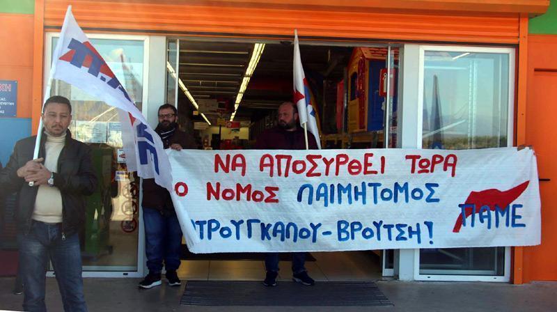 Απεργιακή κινητοποίηση των Σωματείων που συσπειρώνονται στο ΠΑΜΕ πραγματοποιήθηκε σήμερα το πρωί στο κατάστημα Jumbo.