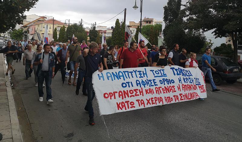 Ακολούθησε πορεία στους δρόμους της πόλης, κατά την διάρκεια της οποίας πραγματοποιήθηκε στάση έξω από το Εργατικό Κέντρο όπου οι απεργοί καταδίκασαν την συμβιβασμένη – όπως τη χαρακτήρισαν - πλειοψηφία του Εργατικού Κέντρου για την απεργοσπαστική της στάση και την προσπάθεια διάσπασης του ήδη διαμορφωμένου απεργιακού μετώπου.