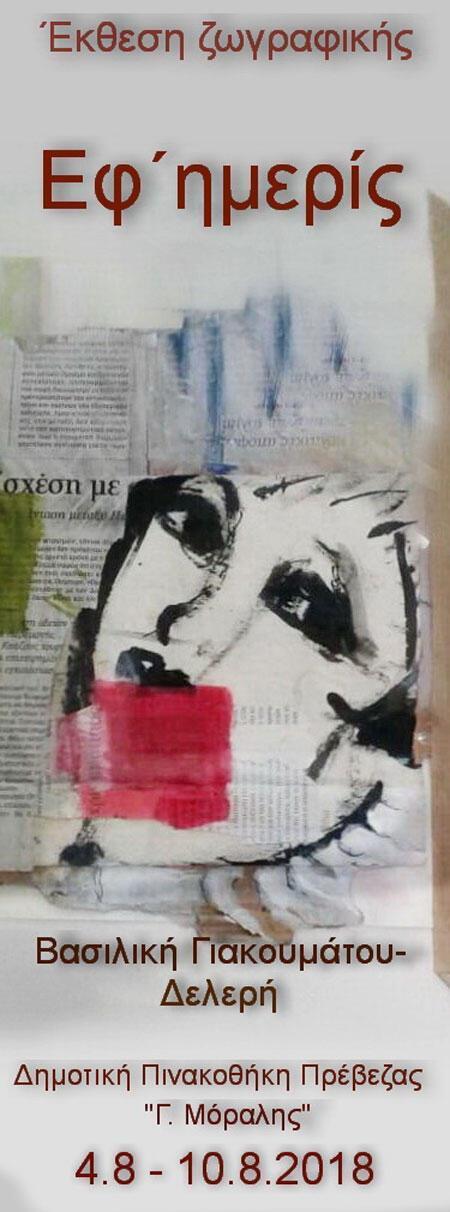 Η Βασιλική Γιακουμάτου - Δελερή έχει μια ιδιαίτερη σχέση με τις εφημερίδες από παιδί. Η εφημερίδα με το περιεχόμενο της μπορεί για εκείνη, να την εμπνεύσει ή να της προσθέσει εικόνες, συμμετέχοντας στην εικαστική δημιουργία. Πλάνα lifestyle, θάνατοι, χαρές καταστροφές, όλα αυτά συνδέονται σε ένα καλλιτεχνικό γαϊτανάκι χρωμάτων και συμβολισμών. Η εφημερίδα για την Βασιλική, δεν σταματάει στην χάρτινη υπόσταση της αλλά συμβολίζει την εξουσία και την άυλη δύναμη καθώς και την ερμηνεία μέσα από την κρίση του αναγνώστη – θεατή. (Ελευθερία Βοναπάρτη – Ιστορικός Τέχνης)