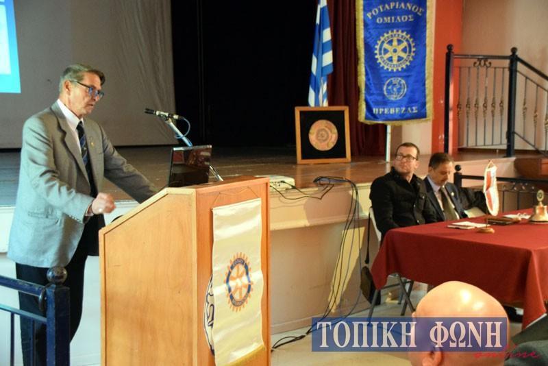 Μερικοί από όσους ήταν ιδρυτικά μέλη δεν είναι σήμερα μέλη του ομίλου, για διαφορετικούς λόγους ο καθένας. Όλοι τους όμως εξακολουθούν να πιστεύουν και σέβονται τα ροταριανά ιδεώδη. Εκτιμούν τις προσπάθειες που καταβάλει τόσο το διεθνές Ρόταρυ όσο και ο όμιλος Πρέβεζας. Σήμερα είμαι πολύ χαρούμενος που βρίσκομαι κοντά σας. Άνθρωποι που εμφορούνται από τα ίδια ιδεώδη βρίσκονται πάντα κοντά. Το Ρόταρυ πάντα ενώνει, ποτέ δεν χωρίζει.