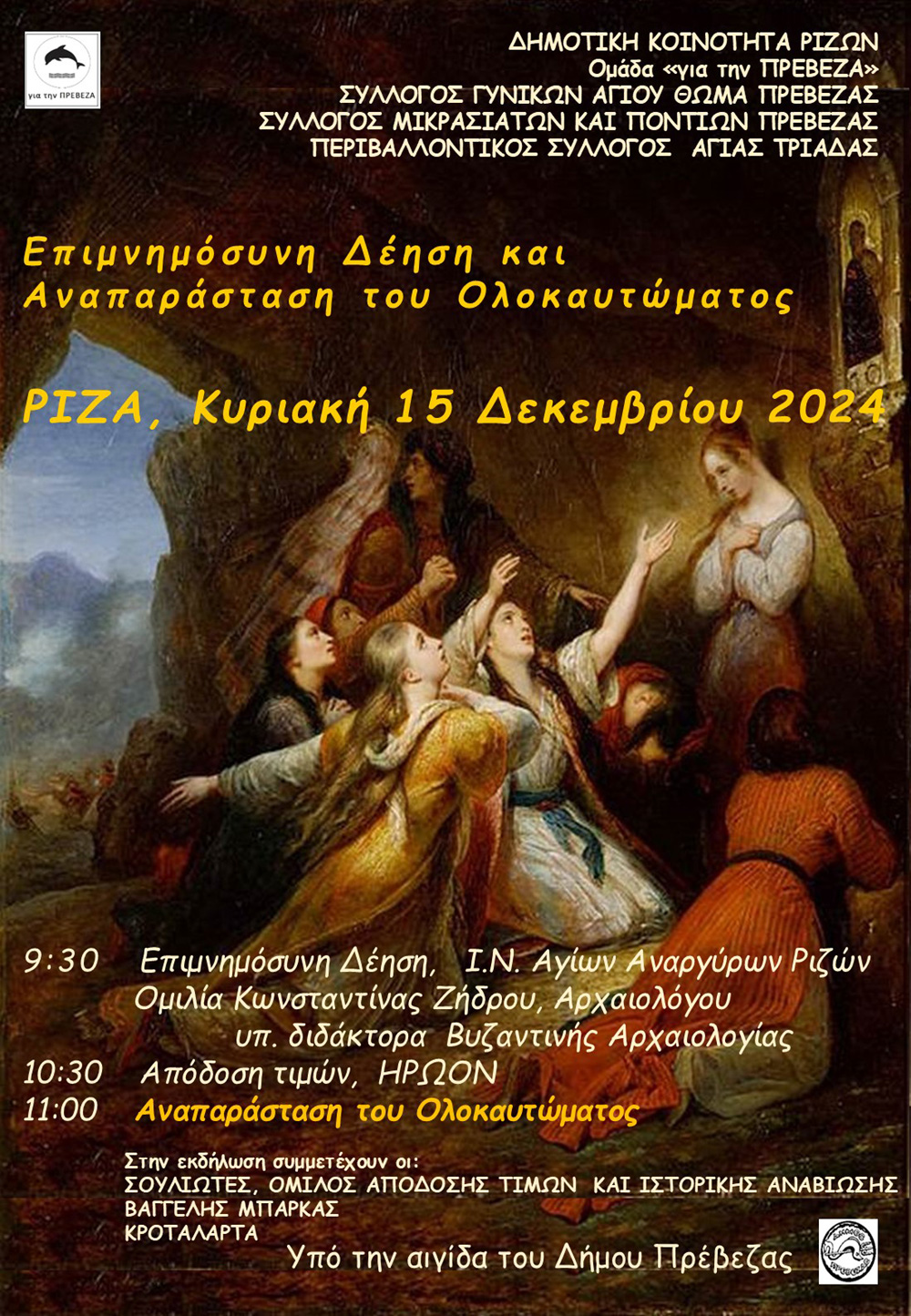 Την Κυριακή 15 Δεκεμβρίου 2024, θα πραγματοποιηθεί στα Ριζά Πρέβεζας, εκδήλωση μνήμης για το Ολοκαύτωμα της Δέσπως Μπότση και της οικογένειάς της.