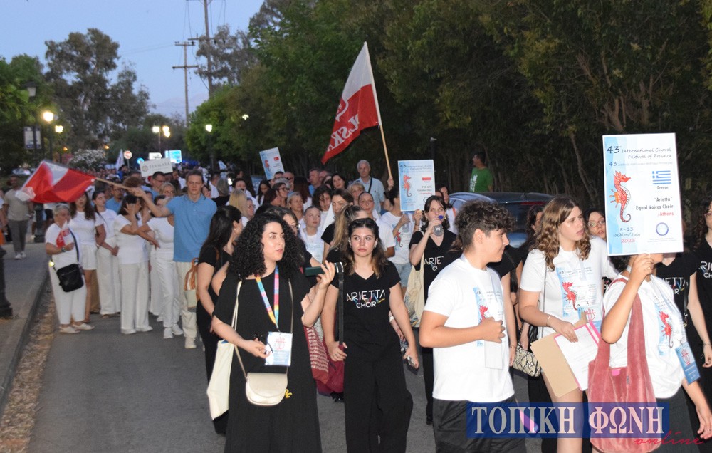 Οι χορωδίες ξεκίνησαν με «παρέλαση» από την Πλατεία Ανδρούτσου προεξαρχούσης της Φιλαρμονικής Πρέβεζας «Ορφεύς», διέσχισαν την παραλία της Πρέβεζας και κατέληξαν στο Δημοτικό Κηποθέατρο.