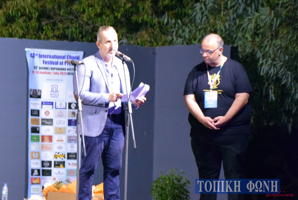 Σύντομο χαιρετισμό απηύθυνε ο Αντιδήμαρχος Πολιτισμού Λεωνίδας Αργυρός, ενώ με βιντεοσκοπημένο μήνυμα καλωσόρισε τους χορωδούς ο Δήμαρχος Πρέβεζας Ν. Γεωργάκος.