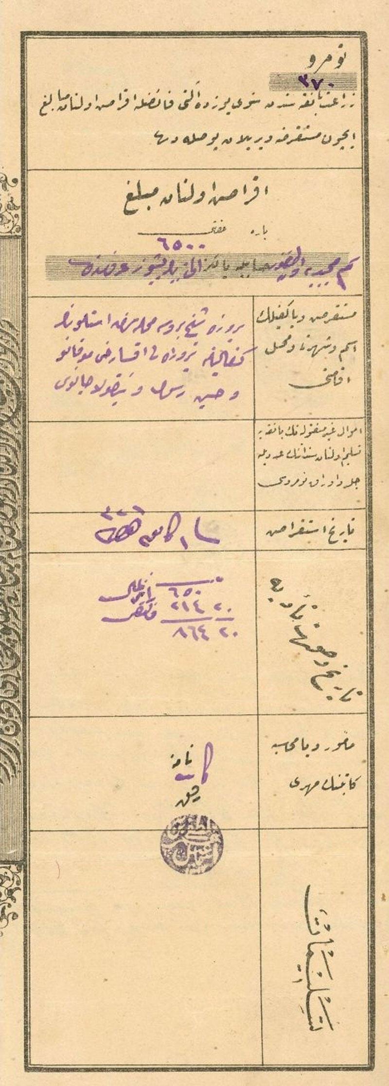Από το αρχείο του κ. Θεόδωρου Μπομποτσάρη παρουσιάζουμε ένα πιστοποιητικό γέννησης (εικ. 1). Από το αρχείο του κ. Γιώργου Μουστάκη παρουσιάζουμε ένα «ταπού» (εικ. 2). Τέλος, από το αρχείο της κας Βικτωρίας Παπαγεωργίου - Τζούρου παρουσιάζουμε ένα γραμμάτιο δανείου της οθωμανικής Αγροτικής Τράπεζας (Ziraat Bankası) με ετήσιο τόκο 6% (εικ. 3) καθώς και μια απόδειξη πληρωμής δόσης του δανείου (εικ. 4).