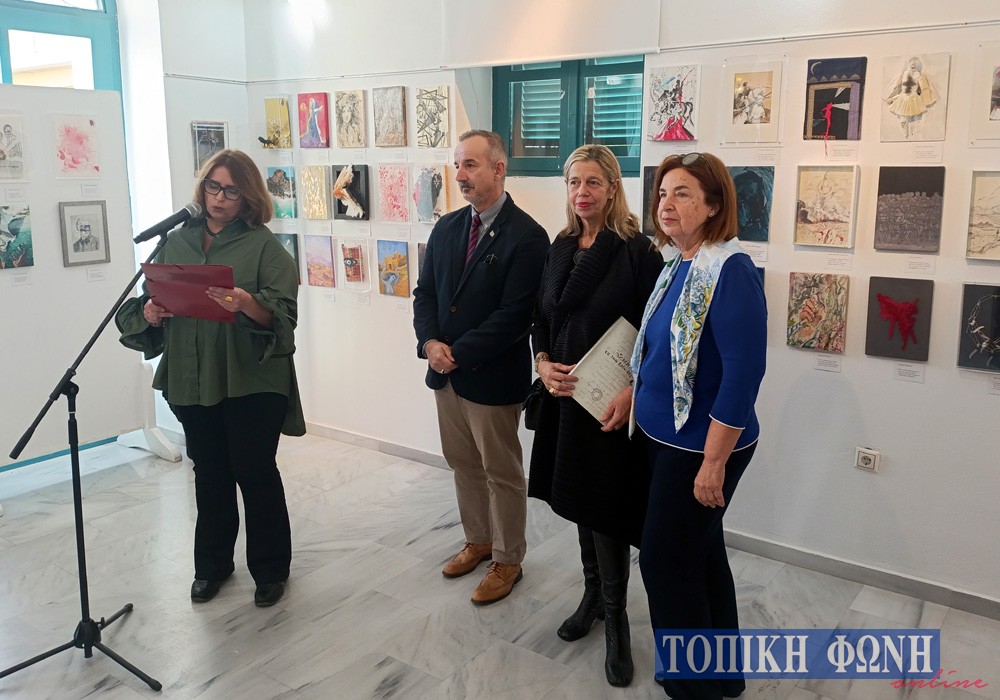 Στον σύντομο χαιρετισμό του ο Αντιδήμαρχος Πολιτισμού Λεωνίδας Αργυρός καλωσόρισε τους παρευρισκόμενους σε αυτή την μοναδική εικαστική ανάγνωση του Ύμνου στην Ελευθερία. «Η Έκθεση δεν είναι απλά μια συλλογή έργων, αλλά ένας οπτικός και πνευματικός διάλογος με το κορυφαίο έργο του Εθνικού μας Ποιητή, τον ύμνο στην Ελευθερία, ο οποίος αποτελεί το κατεξοχήν σύμβολο της εθνικής μας ταυτότητας και της ιστορικής μας συνέχειας ως έθνος» ανέφερε μεταξύ άλλων ο κ. Αργυρός.