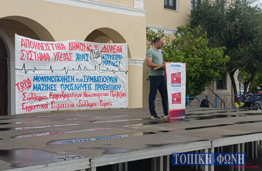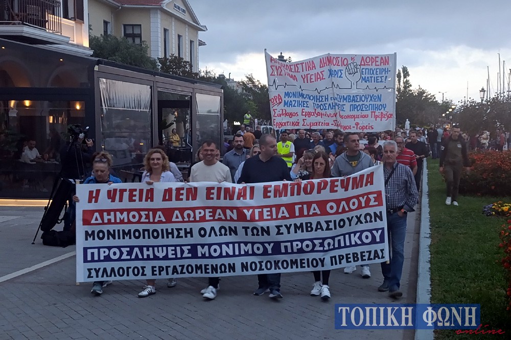 Συλλαλητήριο για την Υγεία με μεγάλη συμμετοχή πραγματοποιήθηκε το απόγευμα της Τετάρτης μπροστά από τα Δικαστήρια Πρέβεζας, μετά από κάλεσμα του Συλλόγου Εργαζομένων στο Νοσοκομείο για την υποστελέχωση των μονάδων υγείας.