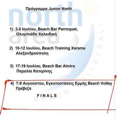 Οι τελικοί ΠANEΛΛHNIOY BEACH VOLLEY JUNIORS U19 NORTH ARREA CIRCUIT θα διεξαχθούν στις εγκαταστάσεις beach volley της ΚΥΑΝΗΣ ΑΚΤΗΣ στην Πρέβεζα στις 7-9 Αυγούστου.