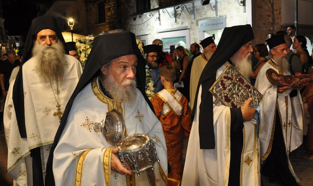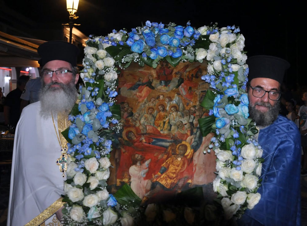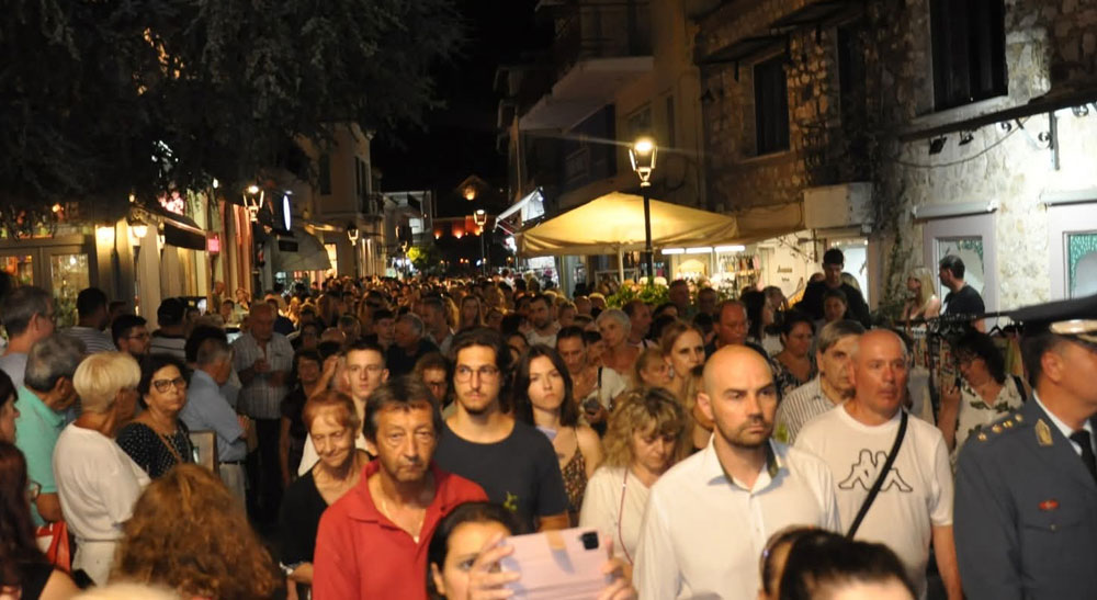 Πλήθος πιστών συμμετείχε στον Εσπερινό που τελέστηκε απόψε στον Ιερό Ναό Κοιμήσεως της Θεοτόκου στην Πρέβεζα και στη λιτανεία της Εικόνας της Παναγίας που ακολούθησε στο ιστορικό κέντρο της πόλης υπο τους ήχους της Φιλαρμονικής Πρέβεζας "Ορφέας".