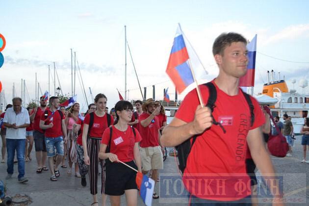 Λίγο μετά τις 8.30 το βράδυ ξεκίνησε η παρέλαση των χορωδιών, ενώ τα "Κρόταλα" έδωσαν ξεχωριστή νότα στην παρέλαση, από την πλατεία Ανδρούτσου με αφετηρία το Κηποθέατρο όπου πραγματοποιήθηκε η τελετή έναρξης.