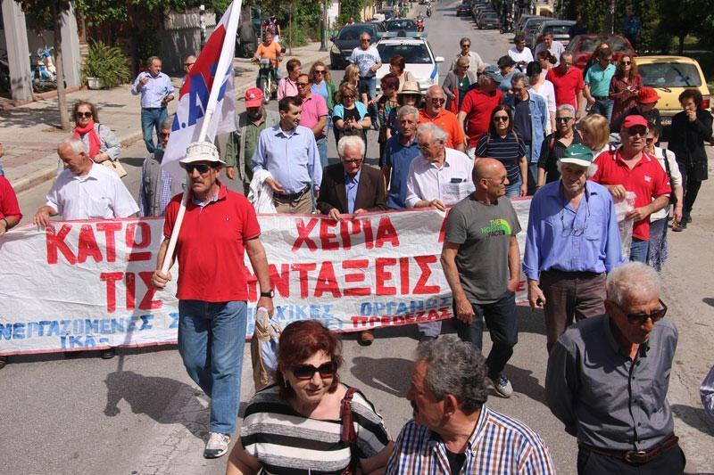 Στη συνέχεια πραγματοποιήθηκε πορεία στους δρόμους της πόλης και κατάθεση στεφάνων στο μνημείο του Σταύρου Κάππα, ενός από τους 200 εκτελεσμένους κομμουνιστές την Πρωτομαγιά του 1944 στην Καισαριανή.