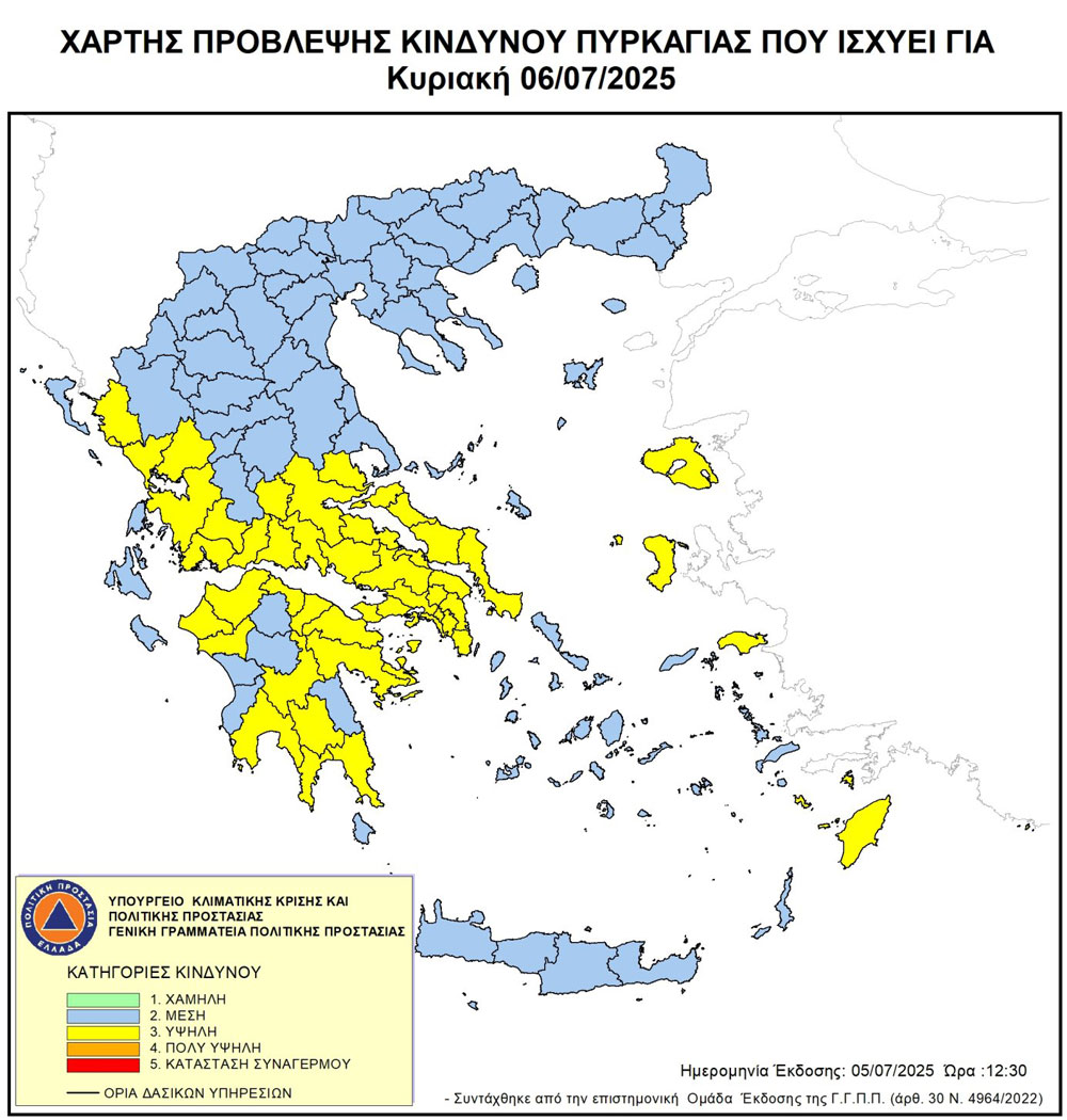 Σύμφωνα με τον από 5-7-2025 Ημερήσιο Χάρτη Πρόβλεψης Κινδύνου Πυρκαγιάς της Γενικής Γραμματείας Πολιτικής Προστασίας αύριο 6 Ιουλίου 2025 ημέρα Κυριακή ο κίνδυνος εκδήλωσης πυρκαγιάς είναι υψηλός (κατηγορία κινδύνου 3) για την Περιφερειακή Ενότητα Πρέβεζας. Έχοντας υπόψη την ανωτέρω πρόβλεψη, υπενθυμίζεται ότι τίθεται σε ισχύ η υπ΄αριθμ.πρωτ. ΠΗ/ΑΔΠΠ/ 108989/6129/20-6-2025 (ΑΔΑ:97ΞΧ7Λ9-ΑΔΖ) Απόφαση του Αντιπεριφερειάρχη Π.Ε. Πρέβεζας κ. Στράτου Ιωάννου, για την προληπτική απαγόρευση κυκλοφορίας από τη δύση του ηλίου έως 6ης πρωινής της επομένης ημέρας στις παρακάτω περιοχές:
