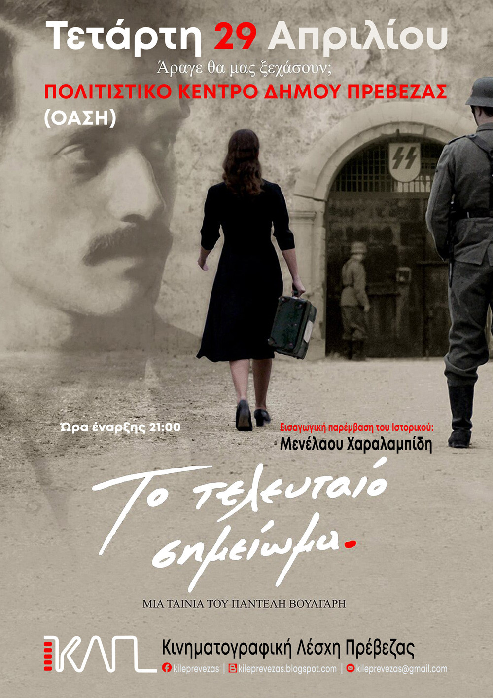 Ημέρα προβολής: 29 Απριλίου 2026.Πολιτιστικό Κέντρο Δήμου Πρέβεζας