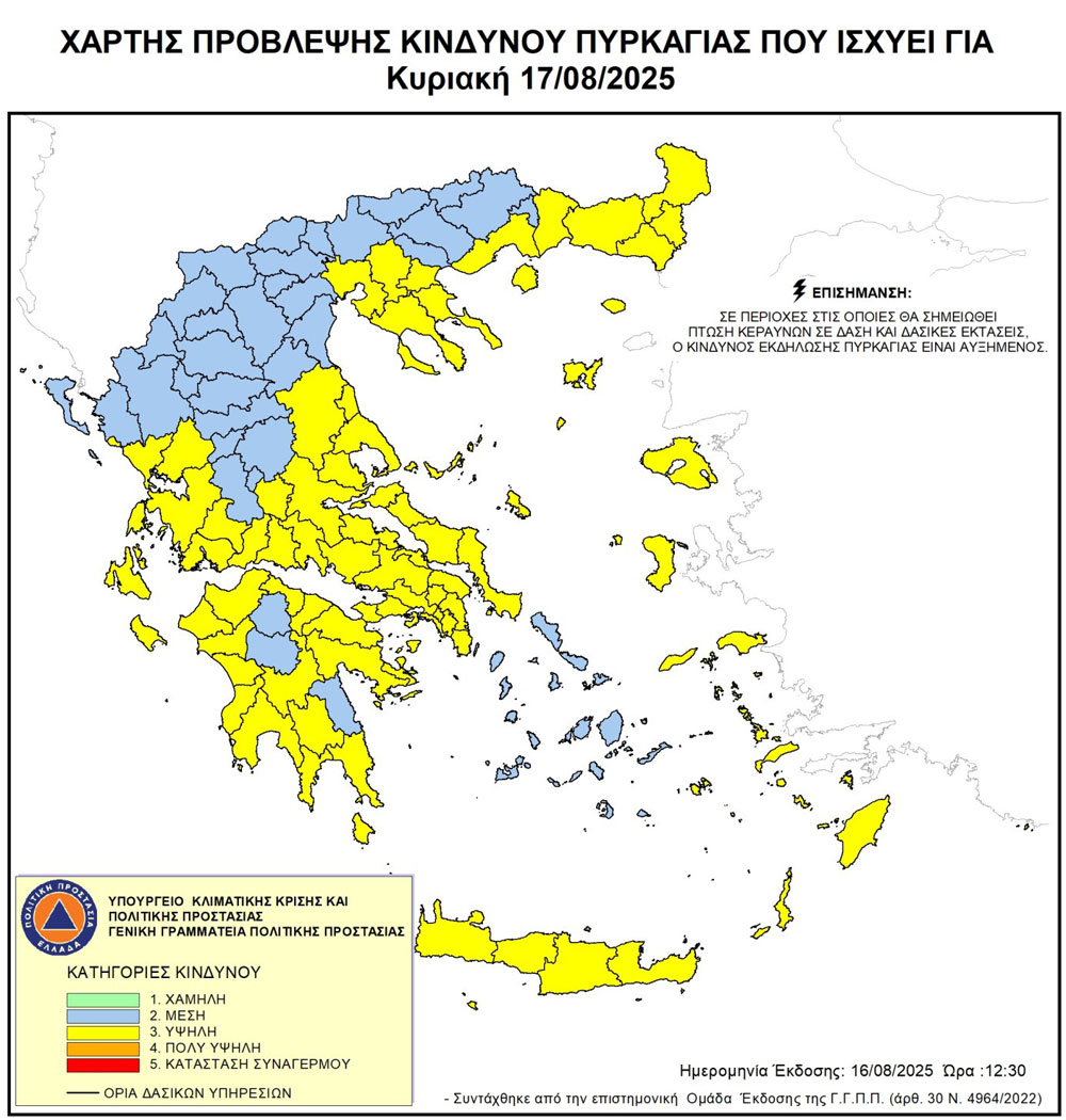 Στις περιοχές υψηλού κινδύνου πυρκαγιάς (κατηγορία 3) βρίσκεται ο Νομός Πρέβεζας την Κυριακή 17 Αυγούστου, σύμφωνα με τον χάρτη πρόβλεψης κινδύνου του Υπουργείου Κλιματικής Κρίσης και Πολιτικής Προστασίας.