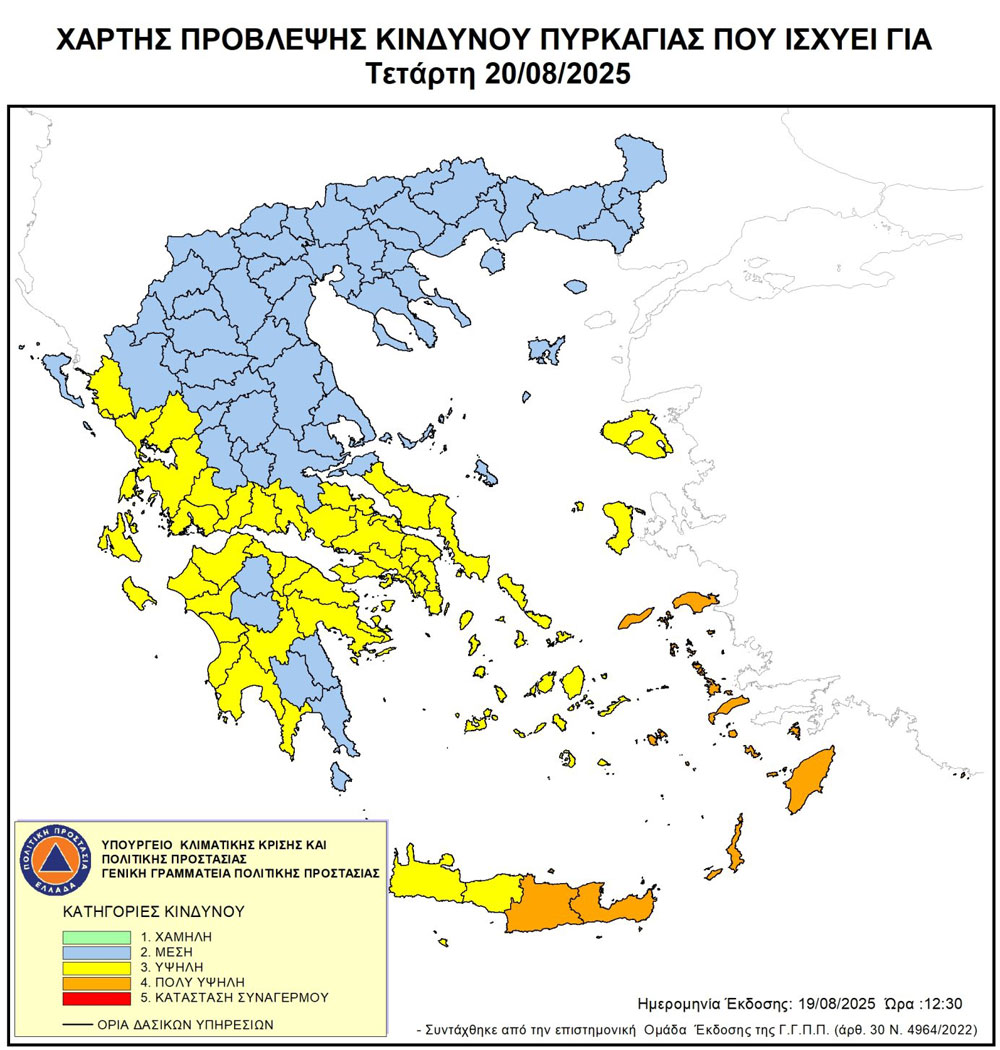 Σύμφωνα με τον από 19-8-2025 Ημερήσιο Χάρτη Πρόβλεψης Κινδύνου Πυρκαγιάς της Γενικής Γραμματείας Πολιτικής Προστασίας αύριο 20 Αυγούστου 2025 ημέρα Τετάρτη ο κίνδυνος εκδήλωσης πυρκαγιάς είναι υψηλός (κατηγορία κινδύνου 3) για την Περιφερειακή Ενότητα Πρέβεζας.