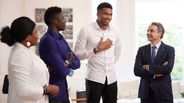 «Στο πρόσωπό σας, στο πρόσωπο όλης της οικογένειας Αντετοκούνμπο, αντικατοπτρίζεται η Ελλάδα που θέλουμε: η Ελλάδα που προσπαθεί, αγωνίζεται, ξεπερνά τις δυσκολίες, κρατά ενωμένη την οικογένειά της. Είναι η Ελλάδα που μας κάνει περήφανους», είπε ο Κυριάκος Μητσοτάκης. «Οπότε, και πάλι, Γιάννη, 'Αλεξ, κ. Βερόνικα, πολλά συγχαρητήρια», πρόσθεσε.