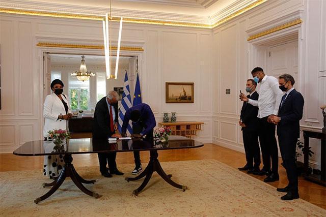 Ιδιαίτερα σημαντική ήταν η χθεσινή ημέρα, καθώς η μητέρα του καλαθοσφαιριστή του ΝΒΑ και ο αδερφός του, πολιτογραφήθηκαν τιμητικά Έλληνες πολίτες σε μία τελετή στο Μέγαρο Μαξίμου παρουσία και του πρωθυπουργού Κυριάκου Μητσοτάκη.