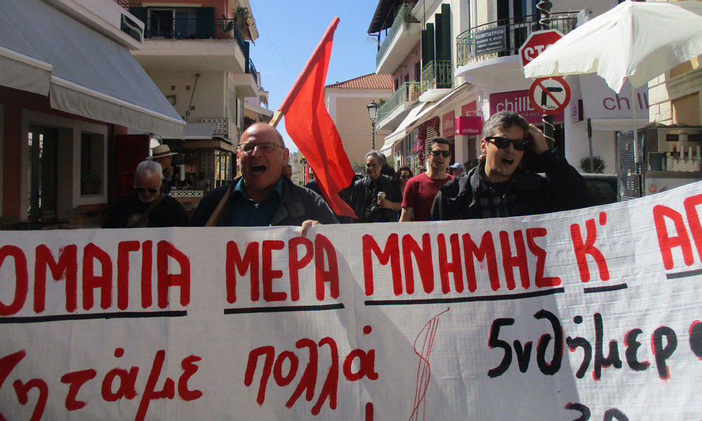 Μετά την ομιλία ακολούθησε πορεία στη κεντρική αγορά της πόλης και κατάθεση λουλουδιών στο μνημείο του Κάππα στον Άγιο Θωμά.
