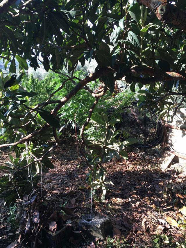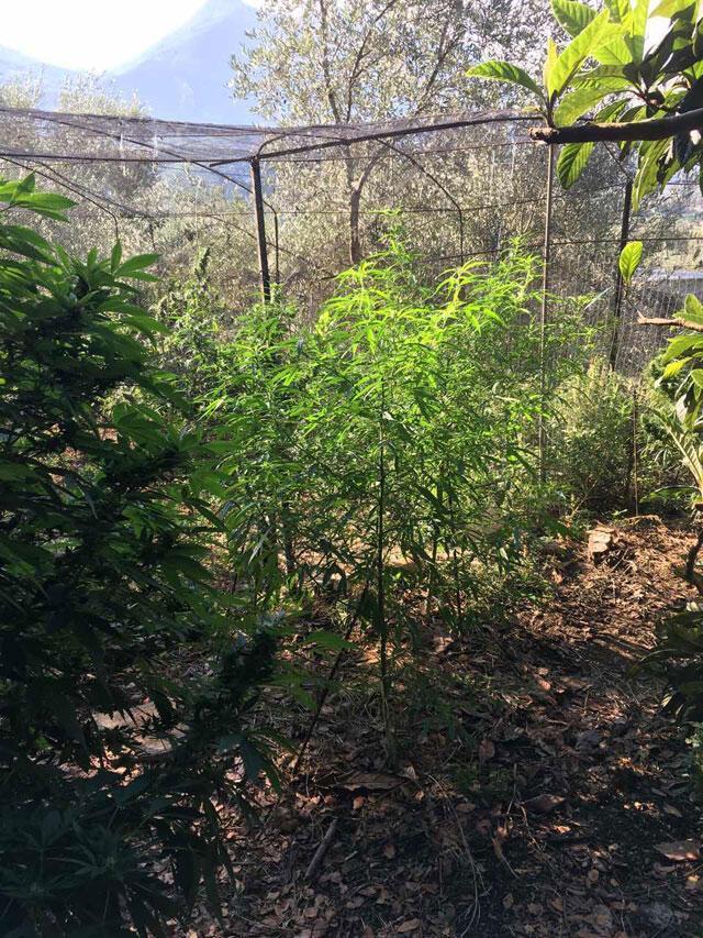 στον προαύλιο χώρο του σπιτιού: φυτεία που αποτελούνταν από συνολικά 44 δενδρύλλια κάνναβης, σε πλήρη ανάπτυξη, με ύψος που έφταναν έως τα 2,2 μέτρα, τα οποία εκριζώθηκαν.