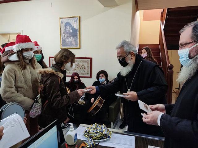 Μαθητές του Μουσικού Σχολείου Πρέβεζας επισκέφθηκαν την Δευτέρα 20 Δεκεμβρίου τα Γραφεία της Ιεράς Μητροπόλεως και έψαλαν τα κάλαντα στον Σεβασμιώτατο Μητροπολίτη μας εν όψει των εορτών.