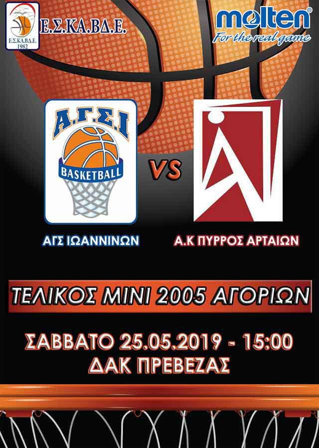 Το προσεχές Σάββατο 25/5 φιλοξενούνται στο ΔΑΚ Πρέβεζας 2 τελικοί πρωταθλημάτων και συγκεκριμένα ο τελικός αγοριών στην ηλικιακή κατηγορία ΜΙΝΙ 2005 και ο τελικός κοριτσιών ηλικιακής κατηγορίας ΜΙΝΙ.