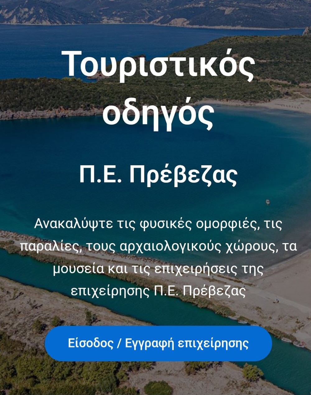 Το Επιμελητήριο Πρέβεζας παρουσιάζει τον νέο Ψηφιακό Τουριστικό Οδηγό του Νομού Πρέβεζας, μια καινοτόμα ψηφιακή υπηρεσία που φιλοδοξεί να καταστήσει τον τόπο μας πρωταγωνιστή του εναλλακτικού και αυθεντικού τουρισμού.