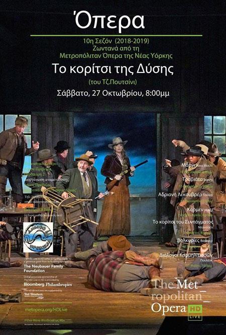 Με τη όπερα «Το κορίτσι της Δύσης» του Τζιάκομο Πουτσίνι που εκτυλίσσεται στην Άγρια Δύση την εποχή του "πυρετού του χρυσού" συνεχίζονται οι απευθείας μεταδόσεις από την Μετροπόλιταν Όπερα της Νέας Υόρκης, το Δήμο Πρέβεζας και το Δημοτικό Ωδείο "Σπύρος Δήμας" στο Πολιτιστικό Κέντρο του Δήμου Πρέβεζας.