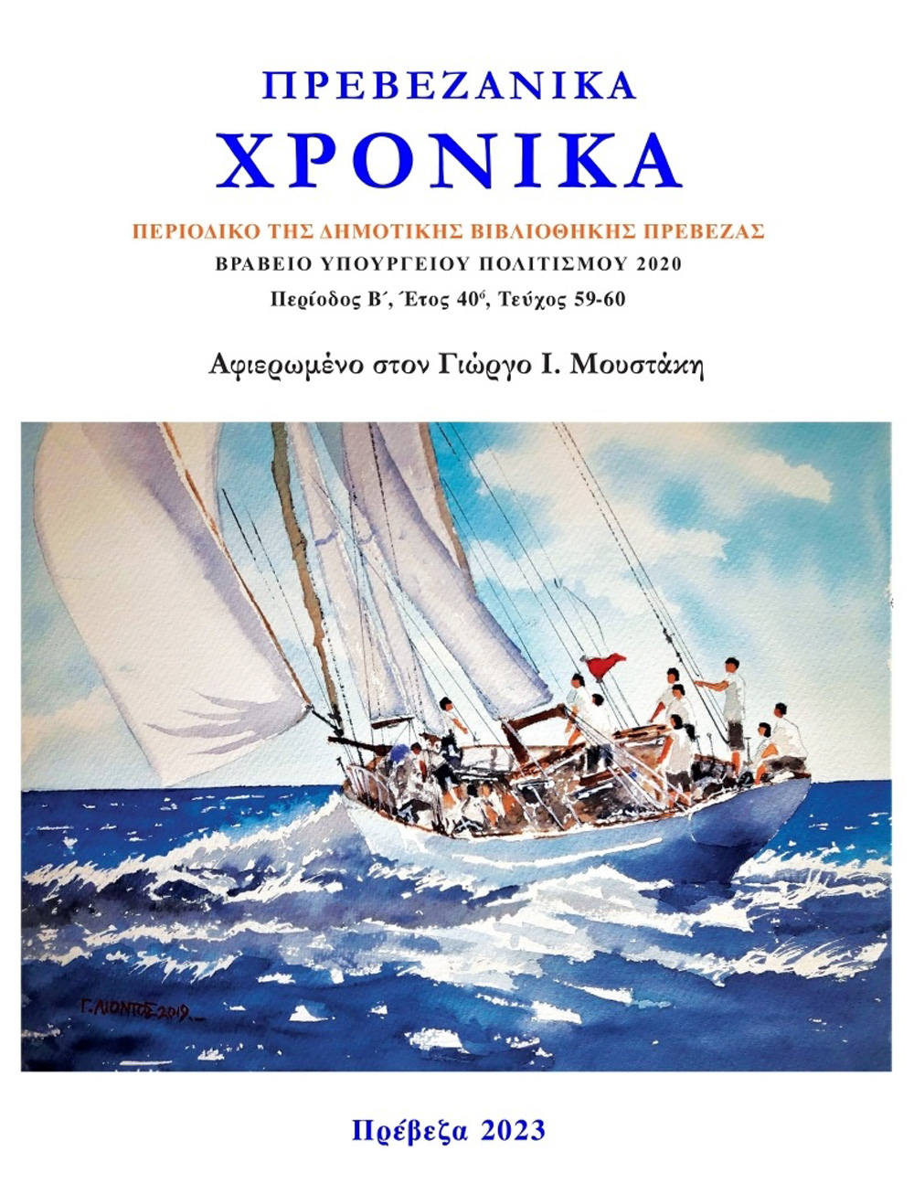 Το Τμήμα Πολιτισμού Δήμου Πρέβεζας, η Δημοτική Βιβλιοθήκη Πρέβεζας και η Συντακτική Επιτροπή των Πρεβεζάνικων Χρονικών, με ιδιαίτερη χαρά παραδίδουν στο αναγνωστικό κοινό το νέο τεύχος (59ο-60ο) του περιοδικού.